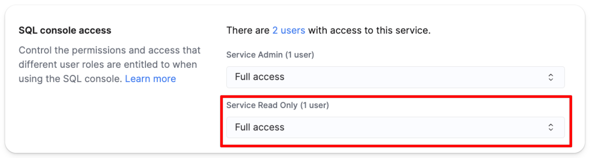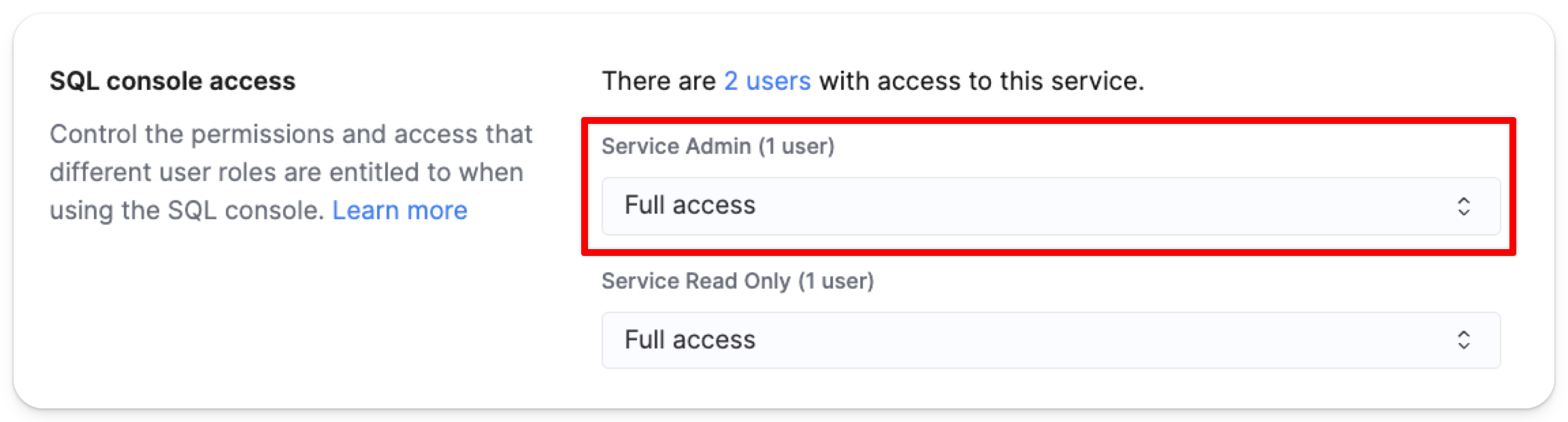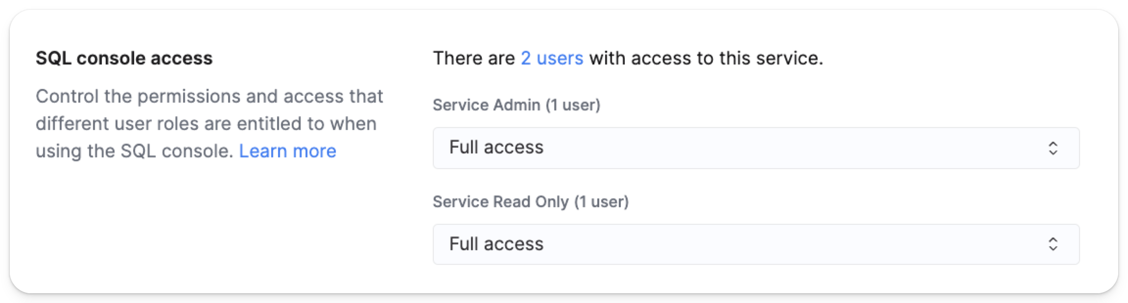This guide shows you how to configure SQL console role assignments, which determine console-wide access permissions and the features that a user can access within Cloud console.